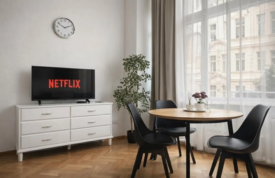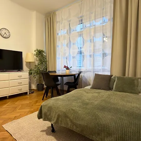 Σ' αυτό τοδιαμέρισμα υπάρχει εξοπλισμένη μικρή κουζίνα με παροχές καφέ και τσαγιού, ψυγείο, φούρνο. Αυτό το διαμέρισμα απέχει περίπου 300 μέτρα από τη στάση λεωφορείων Myslikova και 150 μέτρα από Narodni.